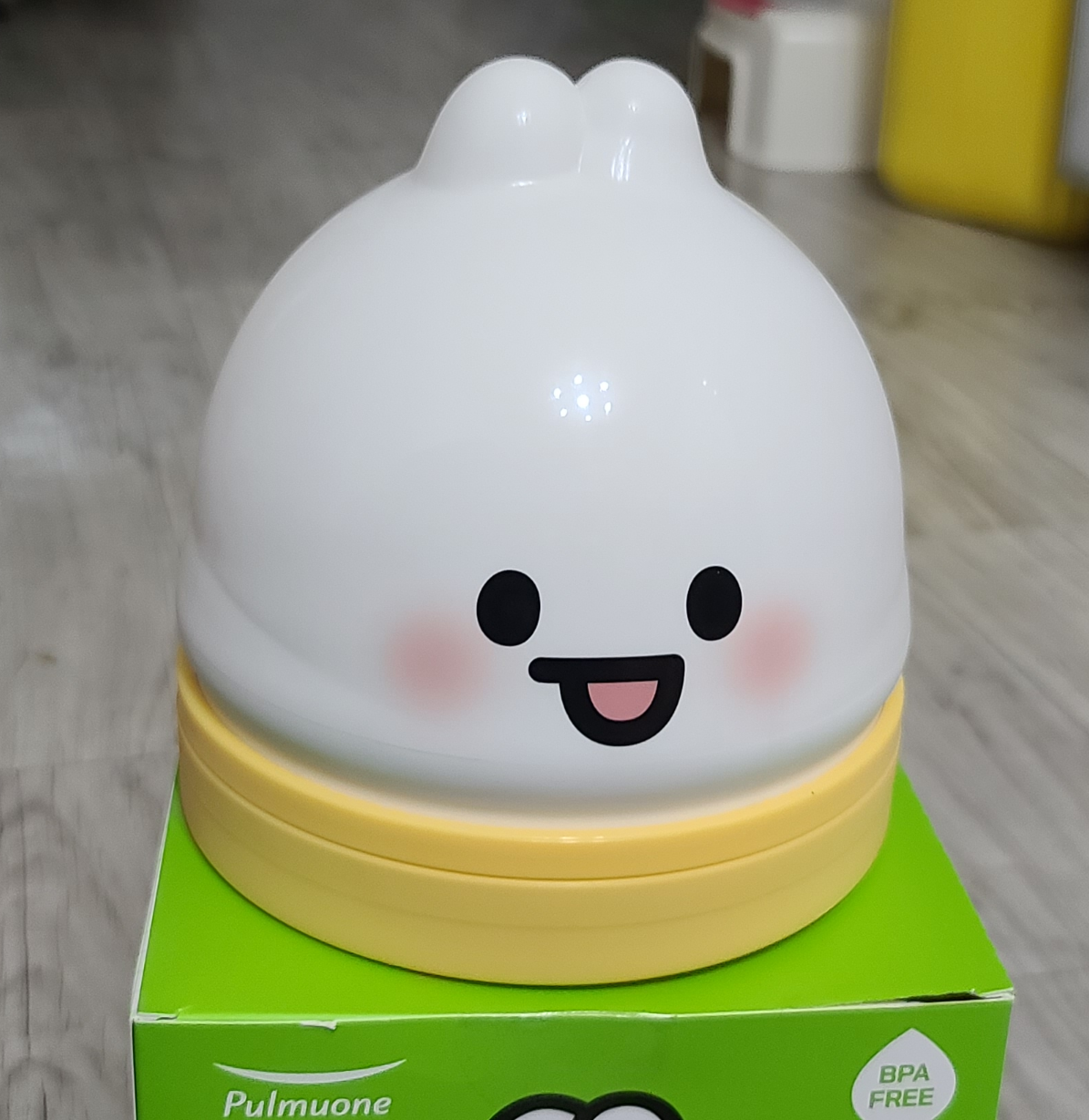 풀무원에서 얇은피 만두를 주문했더니 사은품으로 얄피라는 케릭터 모양의 전자레인지용 찜기를 주었다.